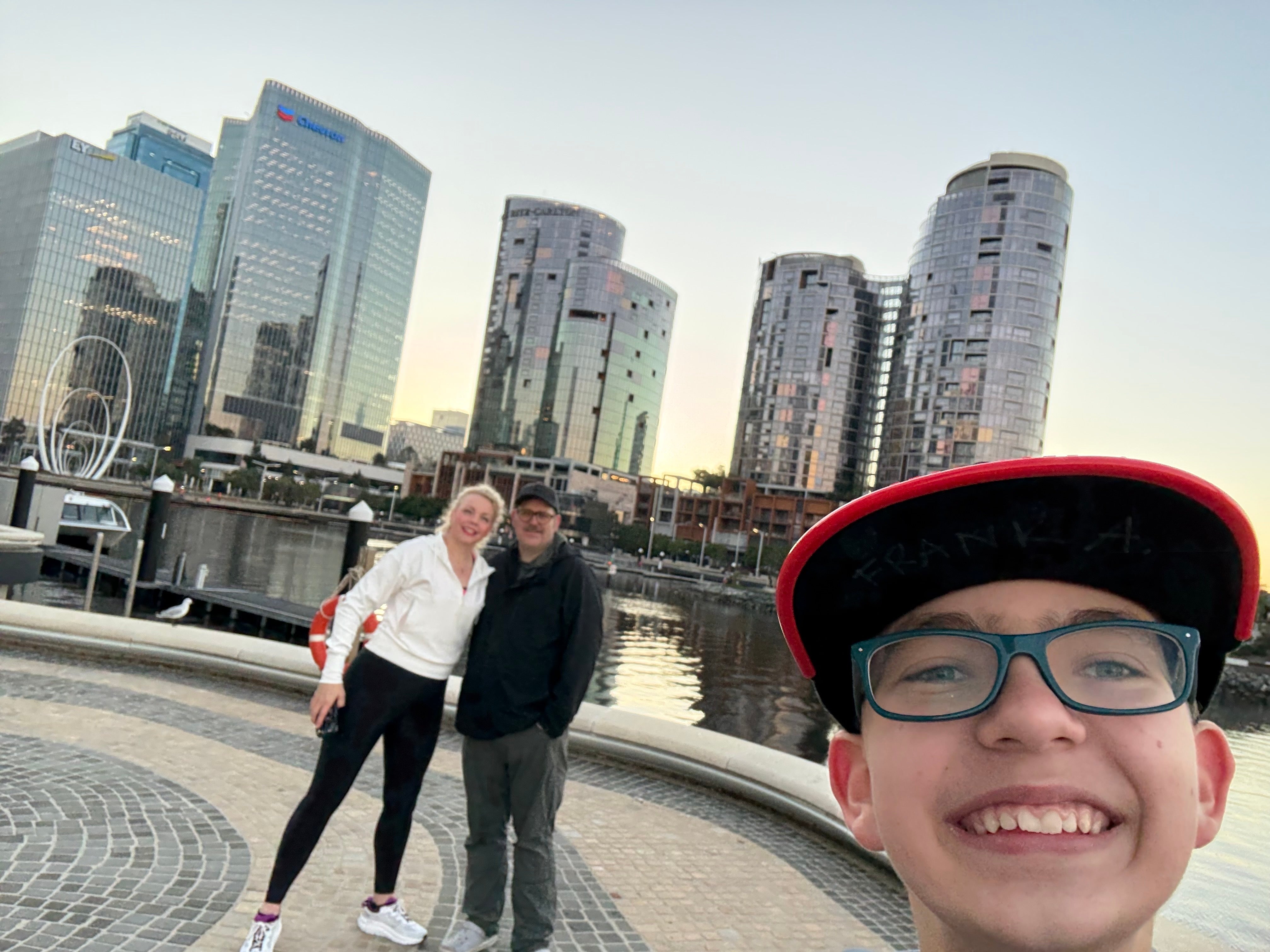 Then finally in Auckland with the famous Sky Tower in the background. You’ll see one pic with Frank filming his step workout for kids while I coach him behind the camera. He filmed a 10 minute kids step workout in all locations. 🩵