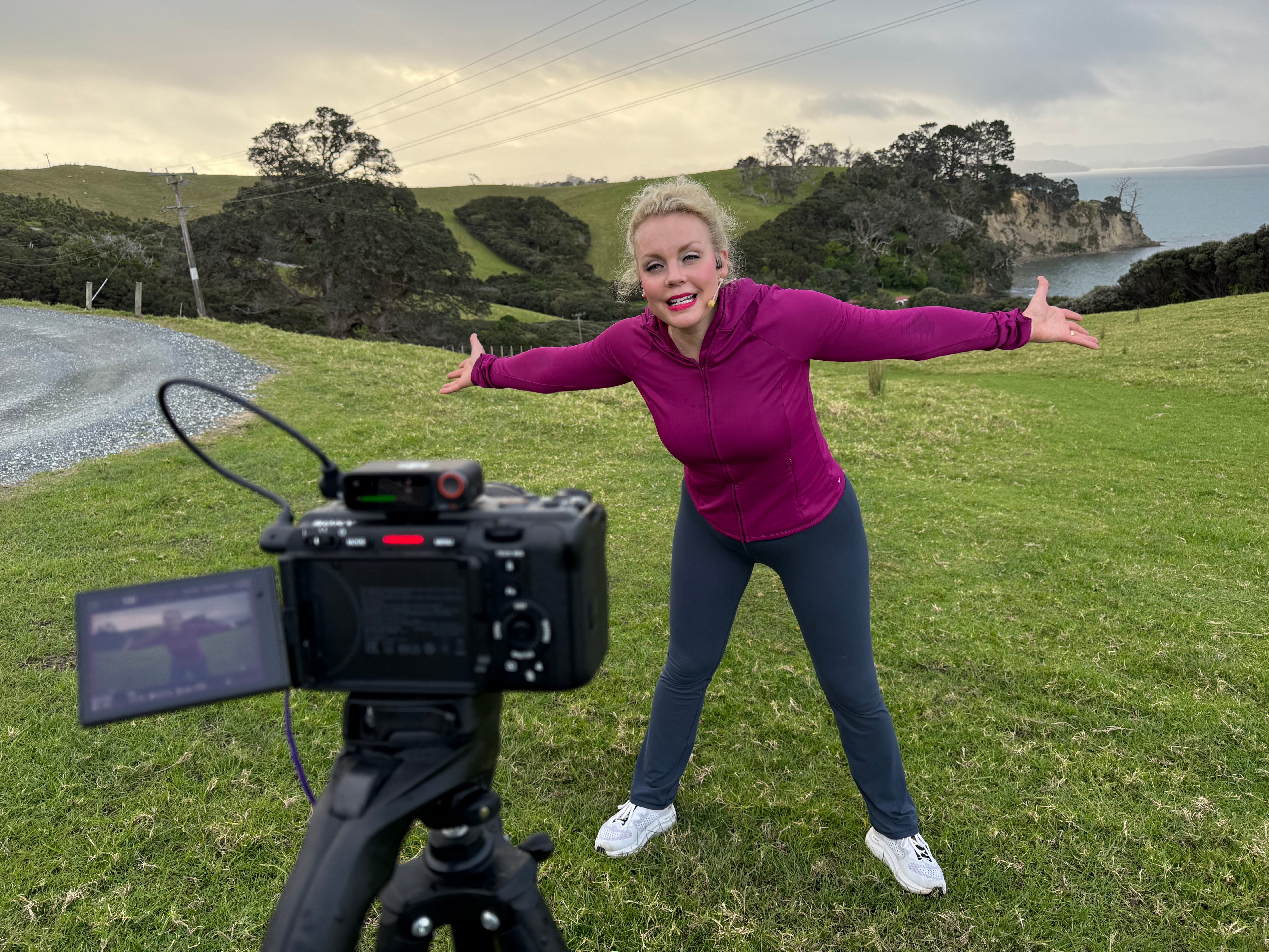 Then finally in Auckland with the famous Sky Tower in the background. Youβll see one pic with Frank filming his step workout for kids while I coach him behind the camera. He filmed a 10 minute kids step workout in all locations. π©΅