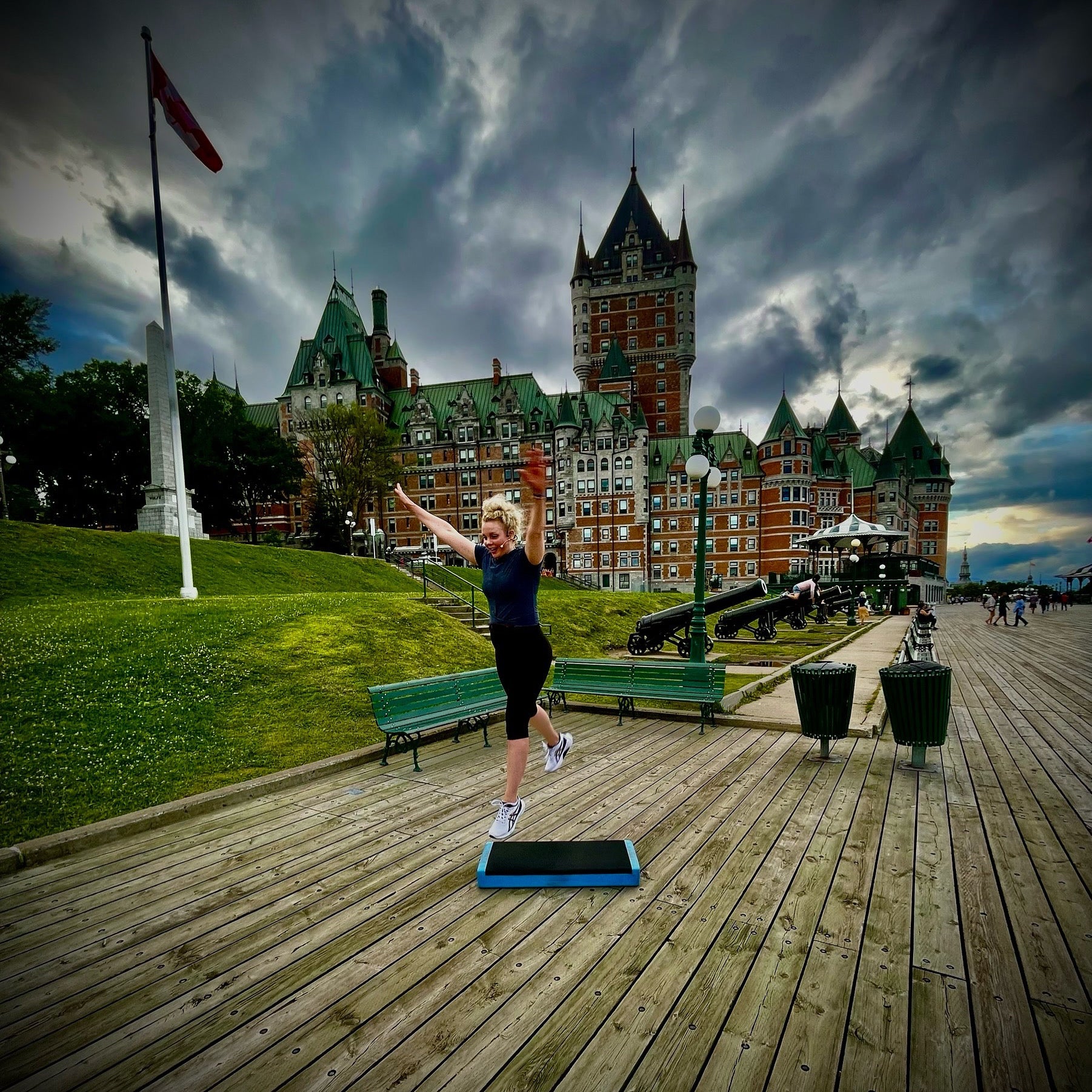 Sad to leave the beautiful Quebec City, Quebec. This location was beautiful. Behind us is the Fairmont Le Château Frontenac, a famous hotel. While is Quebec we filmed workouts for the Step & Walk Across Canada Program, a kids step workout, and a new Coast to Coast Step. 🙌 🙌 Now we’re off to New Brunswick. We’ll be hitting New Brunswick, Prince Edward Island, Nova Scotia, then on to New Found land. Let us know if you’re in any of these places. We’d love to meet up!